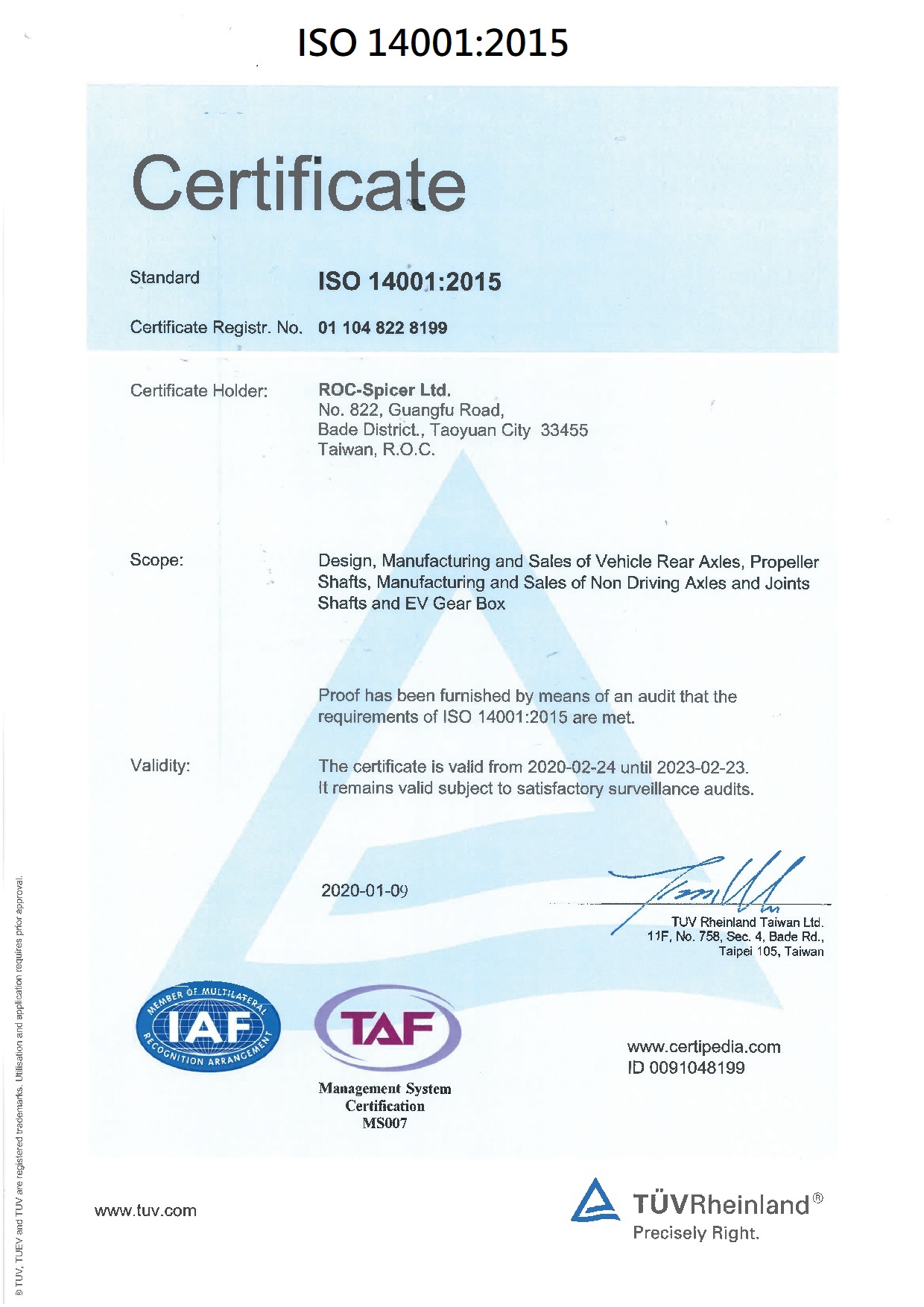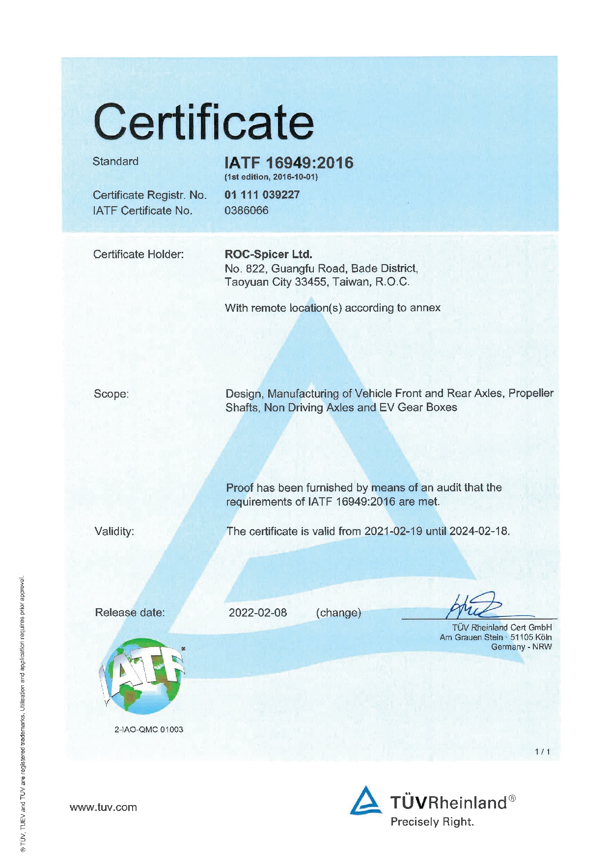 通過ISO/TS16949品質系統驗證