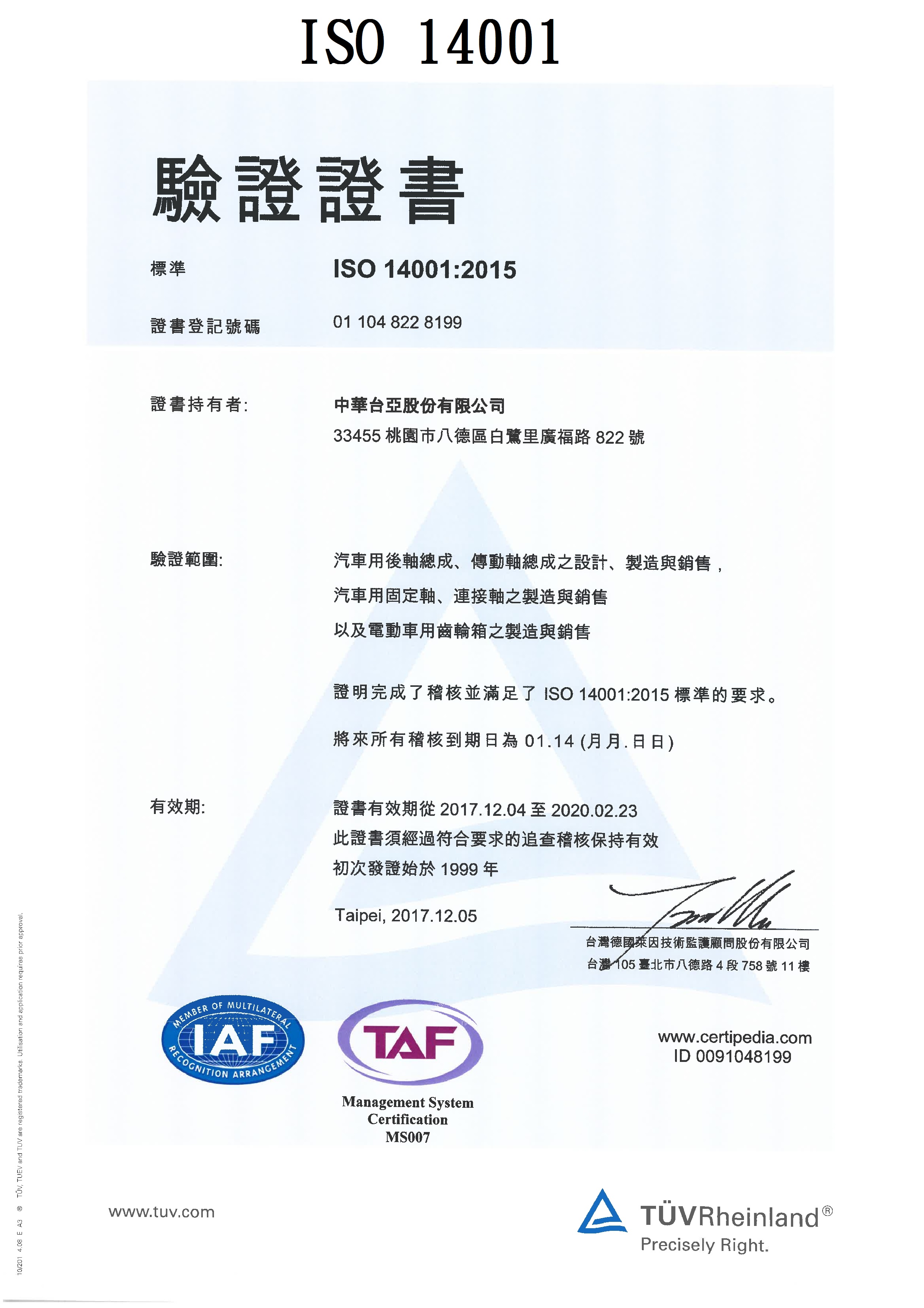 通過 ISO14001 與 ISO45001 系統驗證