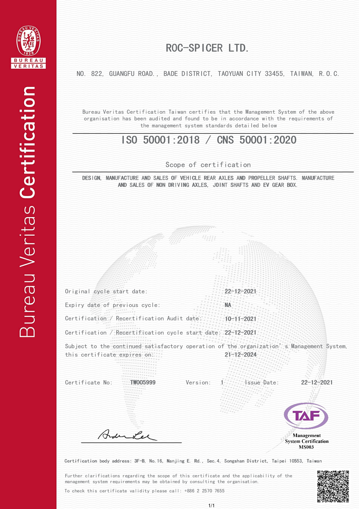 • 通過 ISO 50001:2018 / CNS 50001:2020 系統驗證