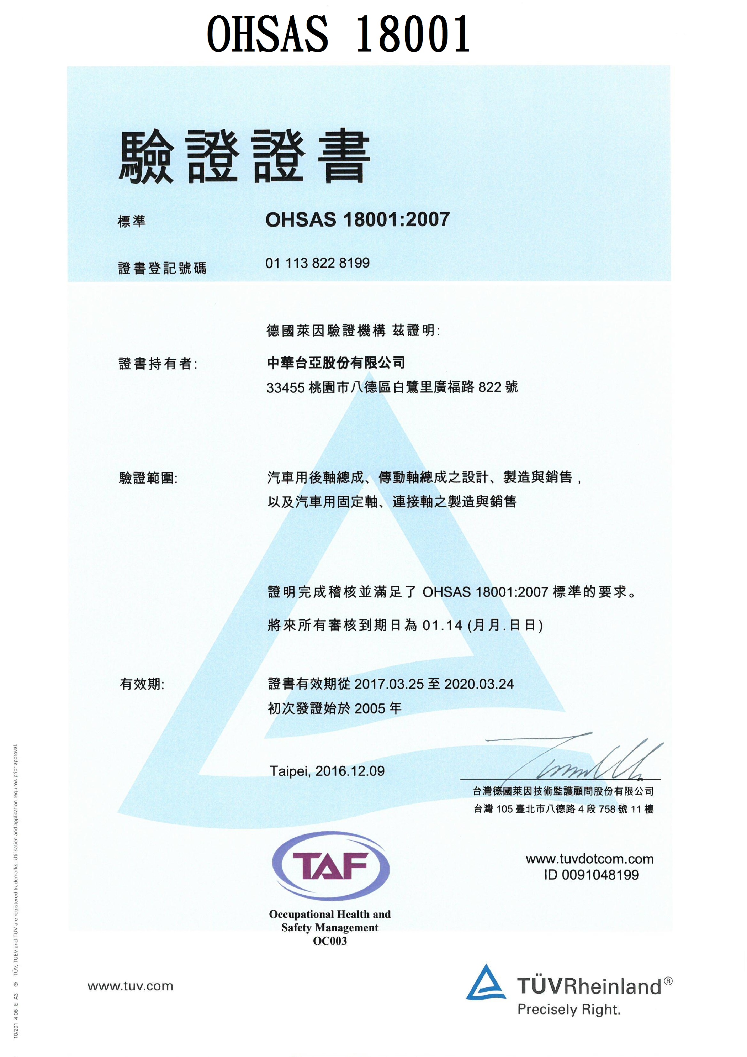 • 通過OHSAS 18001系統驗證